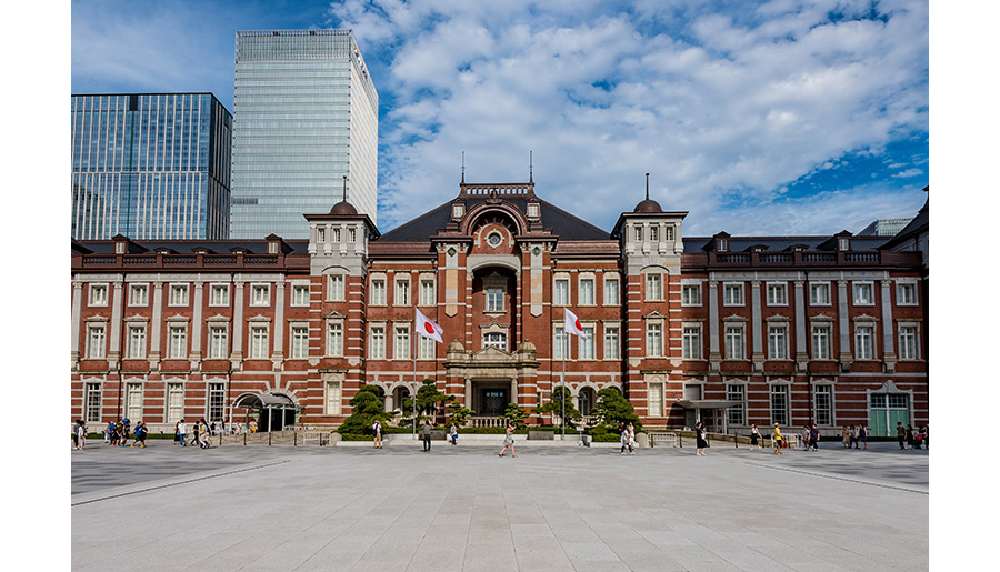 1914年(大正3年)に開業した東京駅は、利用者の増加にあわせて拡張を繰り返し、現在では鉄道ネットワークの起点である日本のセントラルステーションとなりました。東京大空襲で被災した丸の内駅舎も、2012年に創建当時の姿に復原されました。重要文化財と都市施設との両立が図られ、丸の内エリアの成熟と時代変化を体現する建物となっています。