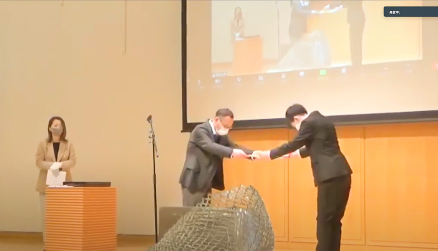 審査は2段階に分けられ、1次審査を通過した6組が、3月3日(金)に2次審査のヒアリングに臨みました。その結果、藤木研究室の作品は最高得点を獲得しましたが、審査委員長の判断により、惜しくも「優秀賞」にとどまりました。