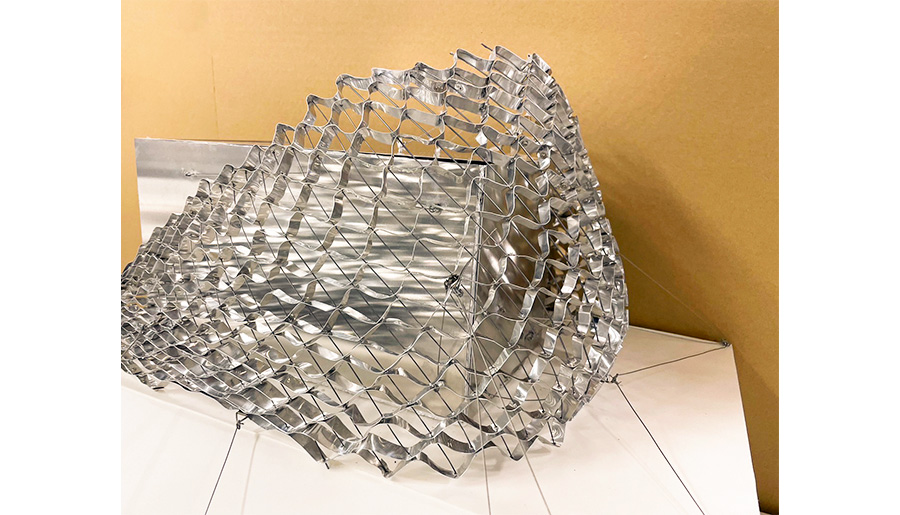 この作品の形態は、最先端のパラメトリック・デザイン手法を用いてつくり出されたものであり、1/20の模型製作に際しても、3Dプリンターで治具を出力するなど、工学院大学建築学部が現在力を入れているデジタル技術・機材をフル活用しています。