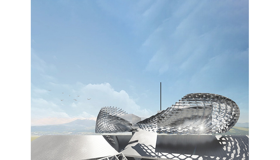 福井市のシンボルであるフェニックスをひと繋がりのアルミのリボンで表現しました。
