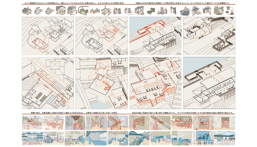 主査、副査含めた教授陣との熱い議論の末、最優秀賞、優秀賞、佳作及びレモン展、JIA修士設計展への出展作品が選定されました。今年は在校生も会場に集い、先輩たちの学生時代最後の作品から多くの学びを得ました。