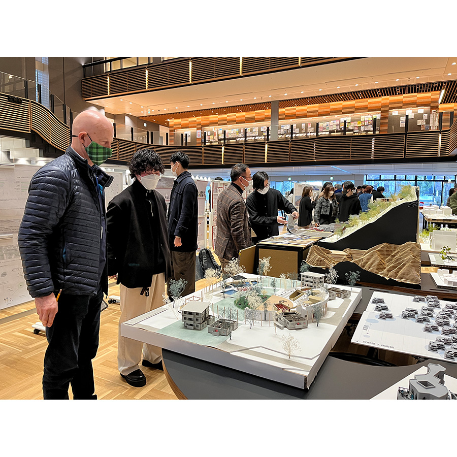 2023年1月29日の審査会には特別審査員として萬代基介氏(建築家)、石井秀幸氏(ランドスケープアーキテクト)をお招きし、午前中の30名によるポスターセッションの中から投票で10名を選出。午後の最終審査では、藤森照信 特任教授、アラン・バーデン特任教授や非常勤の先生方も加わり、白熱した議論の末、12名の受賞が決まりました。