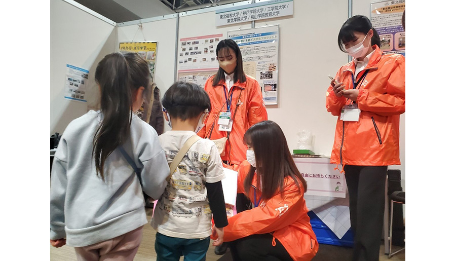 仙台防災未来フォーラムは、3大学だけでなく普段の授業やイベントの開催時にご縁のある東北学院大学(仙台市)・桃山学院教育大学(堺市)を加えた5大学連携企画として出展し、工学院大学と東北福祉大学(仙台市)の学生が運営しました。 学生達は、はじめは戸惑いながらのブース運営だったものの、積極的に来場者に声をかけて取り組みを紹介し、来場者の話に耳を傾けていました。来場した震災経験者や出展者から直接津波・地震被害について伺うことができ、考える場面や聞いた話をメンバーで互いに共有するなど、現地だからこそできる学びを得ようとする姿がありました。