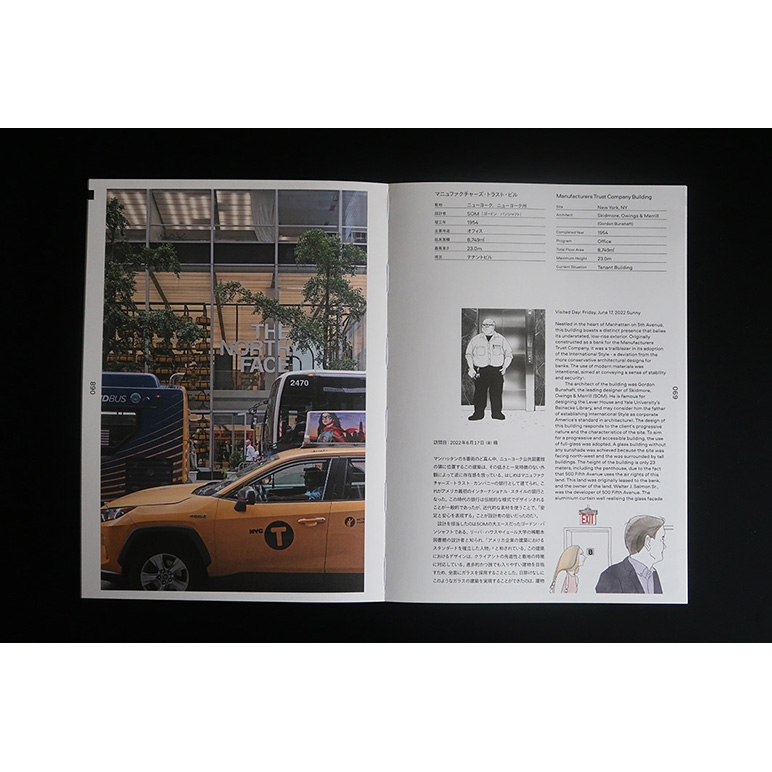 冨永教授は各建物にまつわる人々のイラストと短い漫画を担当しています。漫画は建築評論家・レイナーバンハムが作ったショートムービー「Reyner Banham Loves Los Angeles」(1972年)のオマージュです。