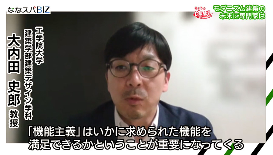大内田史郎教授(建築デザイン学科)は、テレビせとうちの番組「ななスパBIZ」に協力し、4月13日(木)、同番組のコーナー「きょうのピリリ」において「モダニズム建築との向き合い方」のテーマで建築物の保存について解説しました。