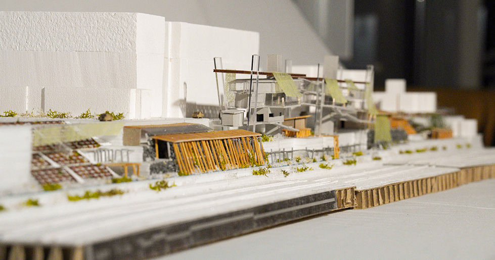 馬場さんの作品は「建築・土木が目に見える上層部しか考えられていない」という現状への違和感に対し、目に見えない下層部である大地・土中についての調査分析を行い、それを積極的に改善するための設計提案です。