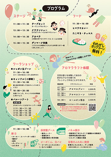 他にもステージ企画やワークショップなど、さまざまな楽しいイベントが予定されています。ぜひ、ご来場ください。