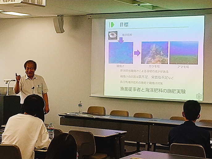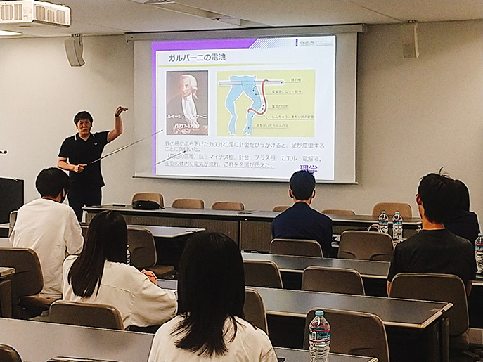 講義では、環境化学科の関志朗准教授による「移動可能なエネルギー:蓄電池の化学」や、金熙濬教授による「資源循環社会を構築するための化学」に関する説明がありました。