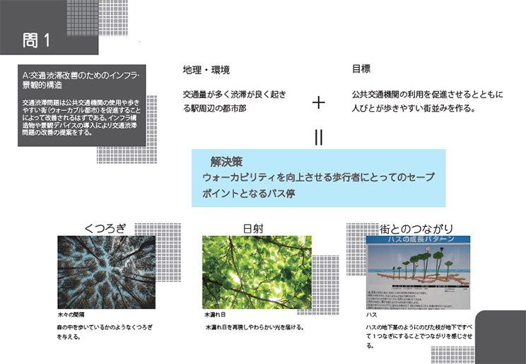 最終課題のテーマは、次世代(2030-2050年)の建築。日常生活へのAI導入やメタ空間の創出、移動手段の変化など、技術革新により大きな変化を遂げた近未来が舞台です。 グループごとに3つの課題テーマから1つを選択し、SDGsに対応する機能をもつプロトタイプをシステムや生体模倣を通じて設計するというもので、そのための仮説づくりと提案を行いました。