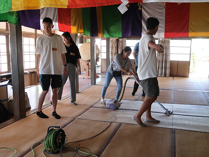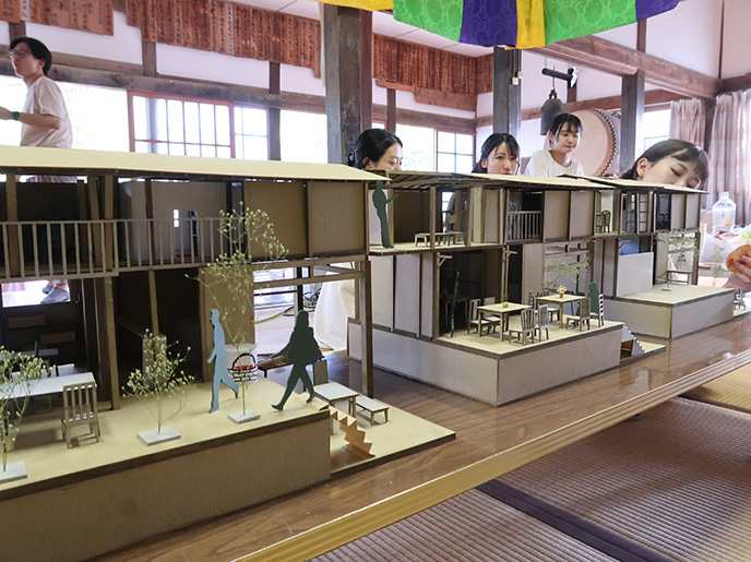 建築デザイン学科冨永研究室は、2021年度から山梨県山梨市赤芝集落での実測調査を行い、今年3月に集落の建築と景観を生かした利活用提案書をまとめました。そして去る8月11日、赤芝集落の信光寺にてその最終報告会を行い、後半は集落の民家の特徴の一つである「附属屋」(作業小屋や蔵など、母屋の附属的な建物として作られるもの)の利活用ワークショップを行いました。
