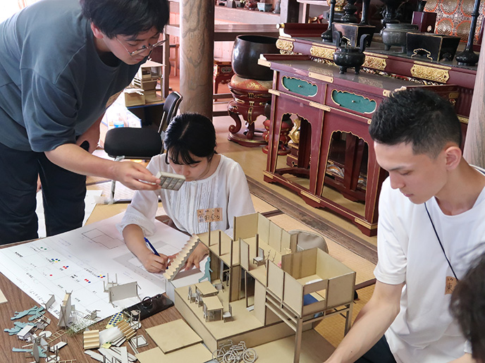 住民の方の意見を聞きながら、学生が建築の形にしていく