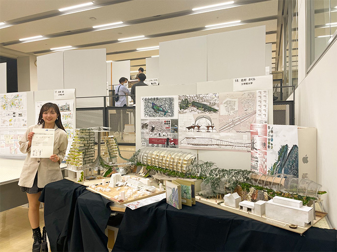 5月13日に第32回JIA東京都学生卒業設計コンクール2023(主催:日本建築家協会関東甲信越支部)が開催され、全52作品の中から建築学部建築デザイン学科4年(当時)北林 栞さん(樫原研究室:樫原 徹 教授)の作品が銀賞を、同4年(当時)北村さくらさん(樫原研究室:樫原 徹 教授)の作品が奨励賞を受賞しました。