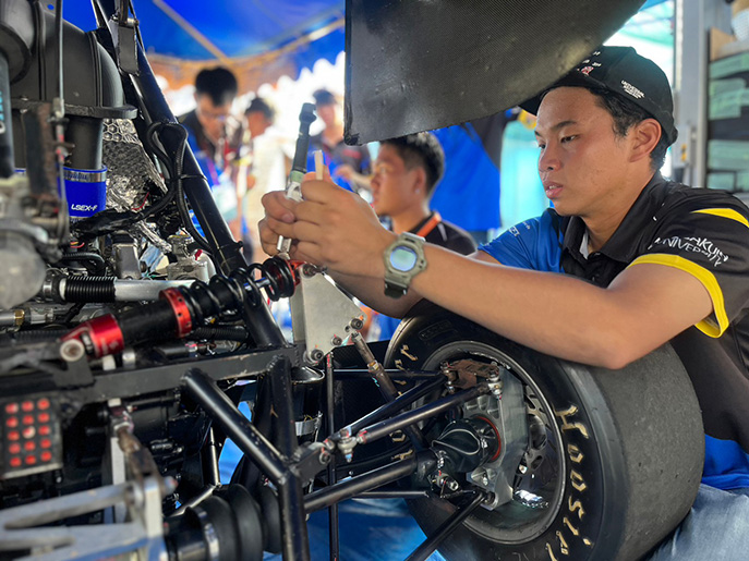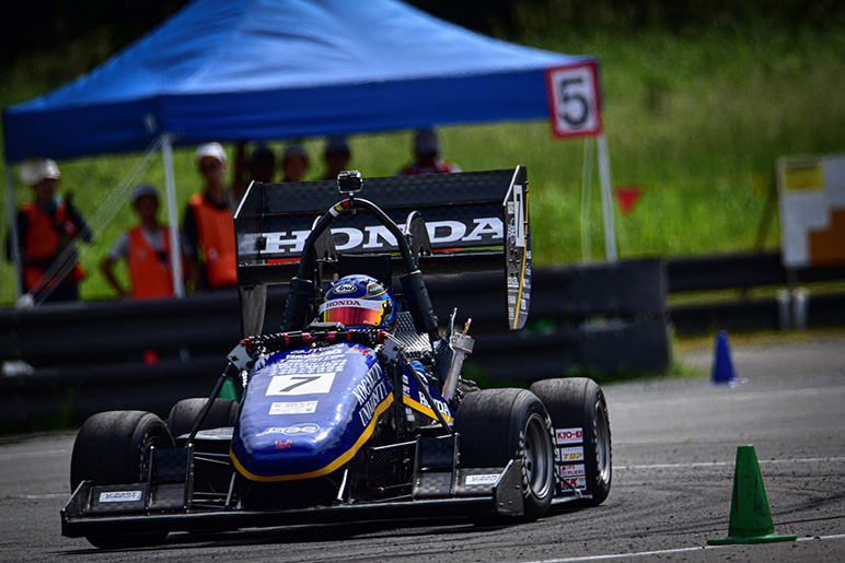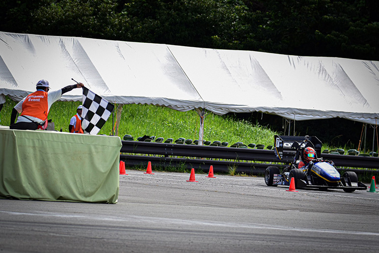 大会前半で実施される静的審査(車検)では一発合格は叶いませんでしたが、指摘事項を迅速に修正し、技術車検を通過。その後、動的審査に進出しました。