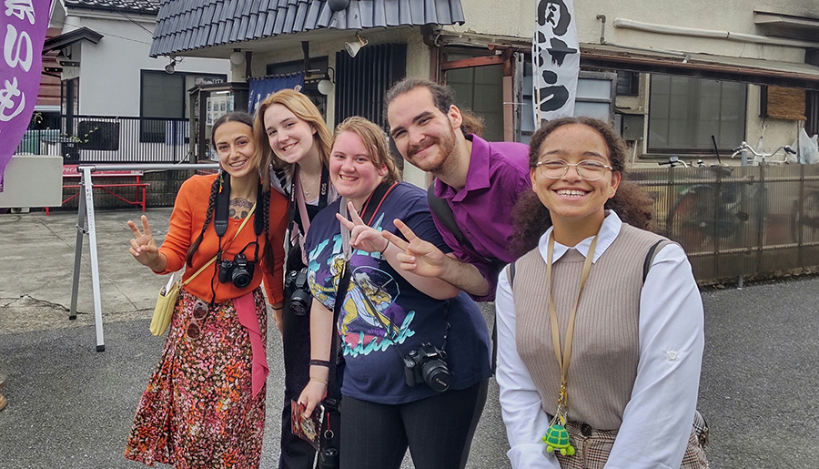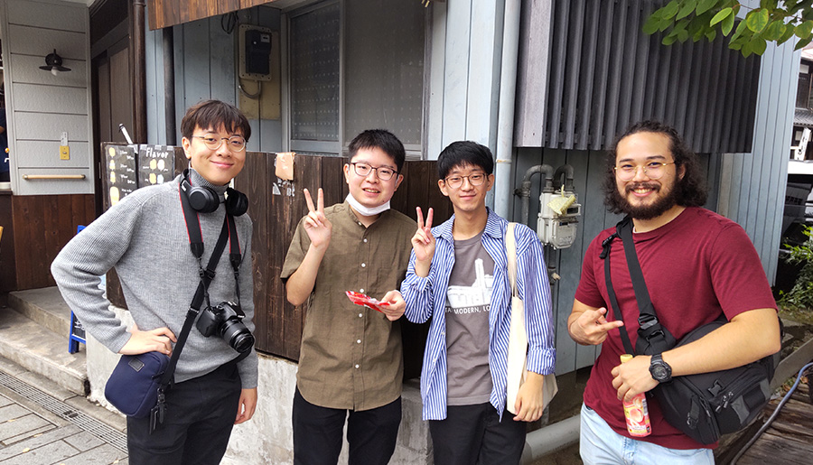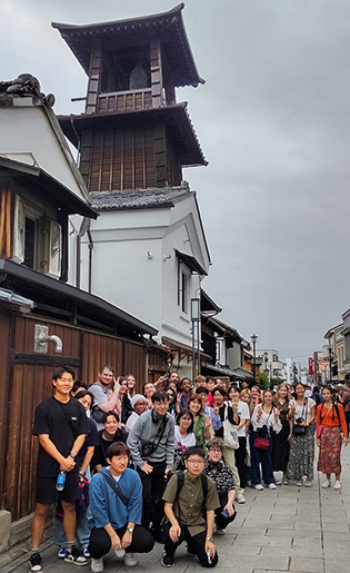 現地では、本学の学生たちが街を案内しながら、一緒に食べ歩きをしたり、神社や日本の歴史的建造物を見て、交流を深めていました。