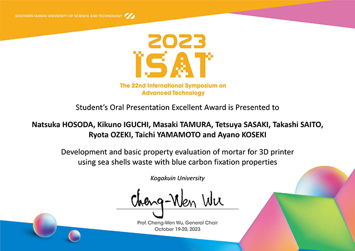 10月19日に南台科技大学にて対面開催された第22回国際先端技術シンポジウム(ISAT-22)において、建築学部建築学科4年の細田夏花さん(3年時カンタベリーハイブリット留学経験有、田村研究室・田村雅紀教授)が、オーラルプレゼンテーションの部門でStudent's Oral Presantation Excellent Awardを受賞をしました。