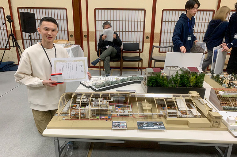 11月19日に行われた「歴史的空間再編コンペティション2022」において、工学研究修士課程 建築学専攻 大学院1年の馬場琉斗さん(冨永研究室)が、グランプリ(最優秀賞)を、同1年の東條巧巳さん(冨永研究室)が模型部門賞(第4位)を受賞しました。