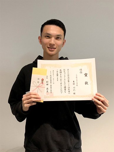 秋田県建築士事務所協会主催「秋田の住宅コンクール」にて、工学研究科建築学専攻 大学院1年の東條巧巳さん(冨永研究室)が佳作を受賞しました。