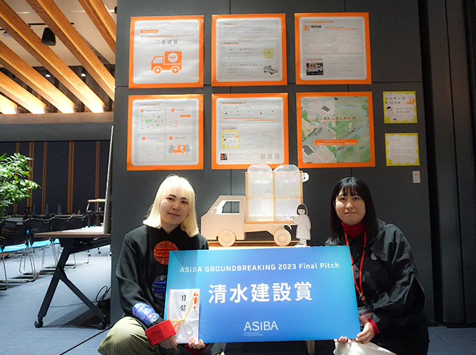 11月25日、清水建設イノベーション拠点「温故創新の森 NOVARE」で開催されたASIBA FINAL PITCH(主催:ASIBA(Architecture Studio for Impact Based Action.))において、新美志織さん(建築学専攻2年)と吉村理子さん(2023年3月建築デザイン学科卒、noiz architects勤務 )による提案「二畳からはじまる。「二畳建築設計事務所」」が、最優秀賞にあたる清水建設賞を受賞しました。