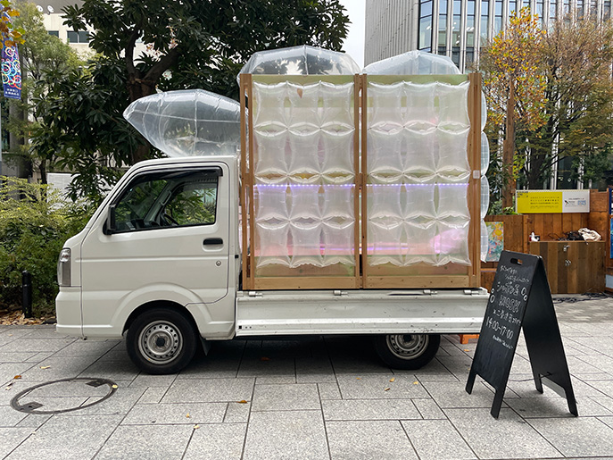 12月5日には、池袋のグリーン大通りで「シャボン玉KIOSK」を実践。タバコの代わりにシャボン玉で休憩する提案で、東京シャボン玉倶楽部の活動と、新美さんらのアイデアとのかけ合わせです。机上の構想で終わらせること無く実際に運用することで、新たな気付きを得る場となりました。