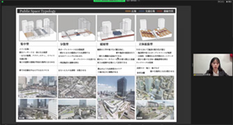 「未来商業施設(集客施設)に関連する研究」という研究テーマの下、商用施設や駅ビル再計画の研究、訪日外国人や宿泊客を対象とした他に類を見ない宿泊施設の提案、社会問題を反映した用途変更を伴う新しい風景の一つとしての建設提案、建物を布で設計していくという今までにない着眼点での実験を通した構造的利用についての研究について発表がありました。