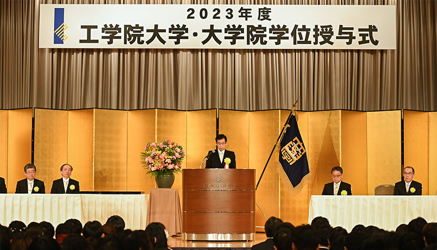 3月19日、京王プラザホテルコンコードボールルームを会場に工学院大学・大学院の学位授与式が挙行されました。2023年度は、学部生1223名、修士・博士課程277名に学位記が授与されました。