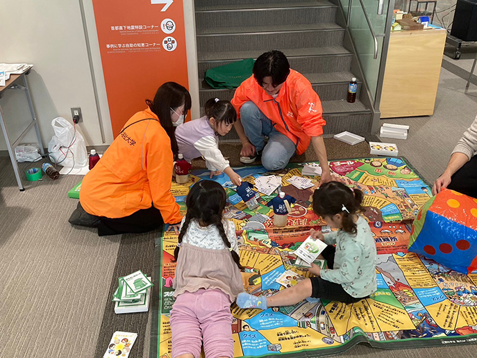 3月2日~3日に、そなエリア東京(東京臨海広域防災公園。江東区有明)で、本学学生が防災ワークショップを開催しました。東北福祉大学(T)、神戸学院大学(K)、そして本学(K)が2009年から活動しているTKK3大学連携プロジェクトによる防災周知活動の一環です。防災面で長く連携している東京家政大学も参加し、4大学の学生がブースを運営しました。