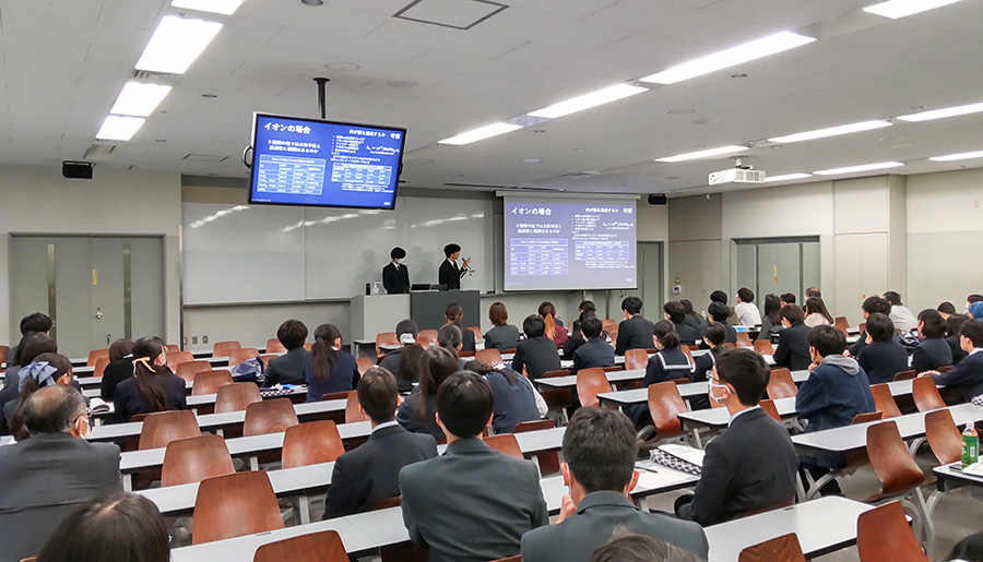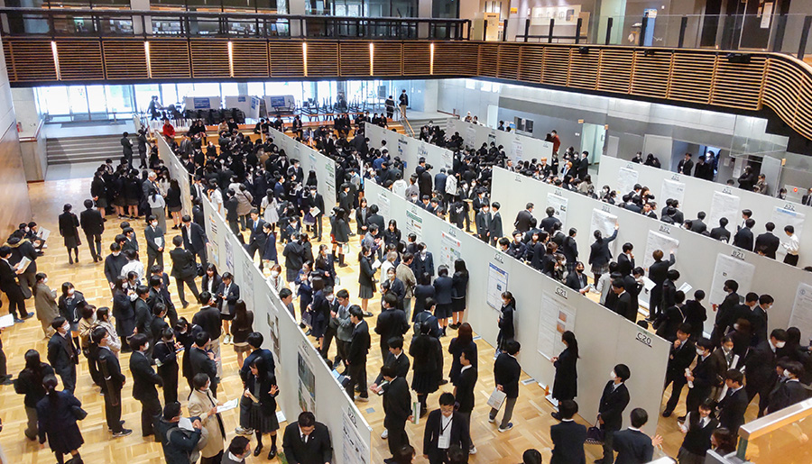 当日は、17校が参加し、496件程度(口頭26件、ポスター470件)の発表がありました。会場には、高校生や保護者の方々含めて約1,100名の参加者があり、本学教員もコメンテーターとして参加しました。発表に対して積極的に質問する高校生の姿も多くみられ、立ち見が出る発表会場もあり、活発なディスカッションを行う機会となりました。