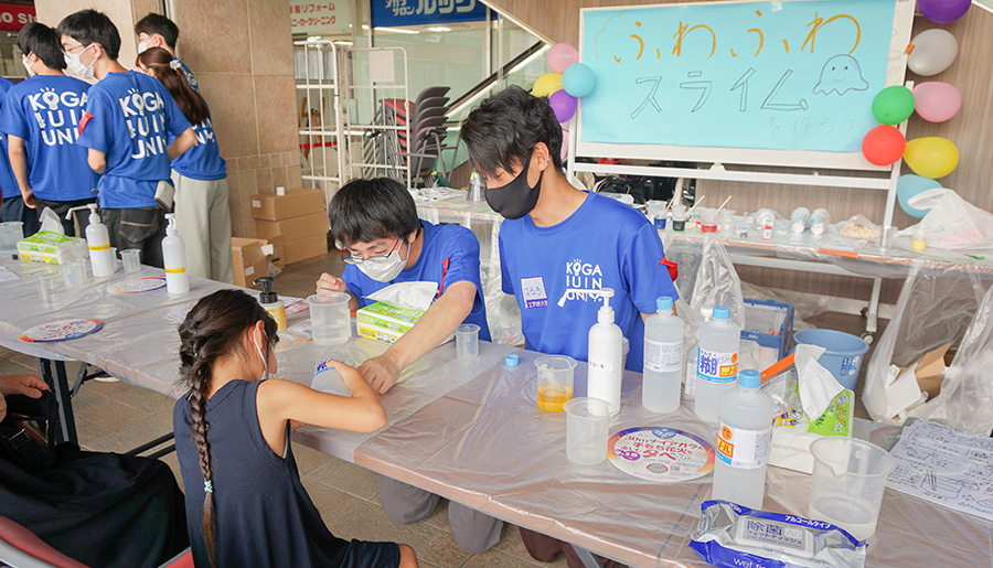 2023年春に開催されたビールまつりでは、武蔵野市のビール醸造場「26K Brewery」と八王子キャンパス内で採蜜したはちみつを使用したオリジナルクラフトビール「せいせきHONEY ALE」を開発する等、産学連携企画を複数実現してきました。今回のイベントではビールまつりに合わせて、同プロジェクトが制作したはちみつ入りハンドソープをビールの泡に見立てたスライム作り体験を企画しました。ほのかにはちみつの香りを感じるスライムを制作することができます。