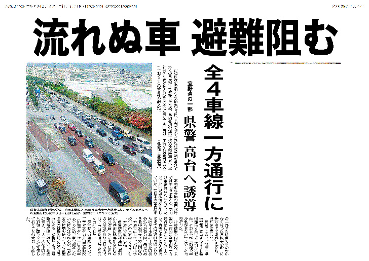 4月3日に台湾付近を震源とする地震が発生し、沖縄県内で発令された津波警報を受け、多くの住民が車で避難したために県内各地の道路で渋滞が発生した問題について、久田嘉章教授のコメントが、沖縄タイムス(4月4日付)に掲載されました。