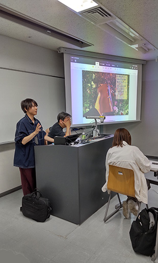 中間発表会では、エントリー作品の中から、9人の学生が作品の発表を行いました。