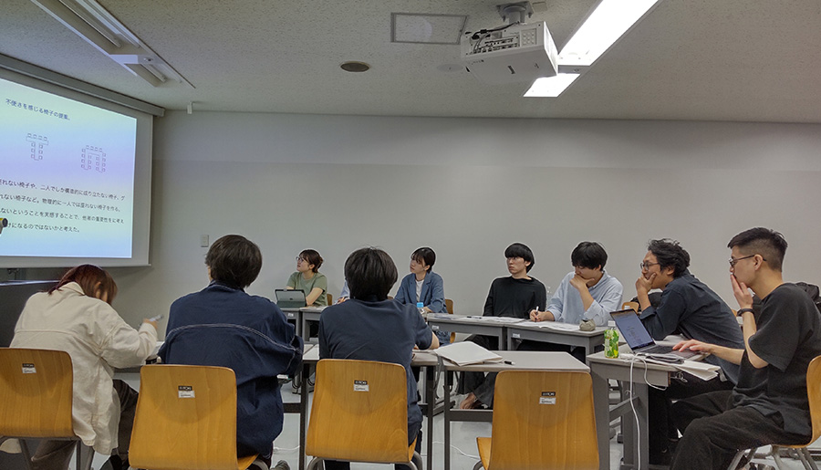 各作品に対するコメントでは着眼点、構想について評価いただくと同時に、「座る」という概念にとらわれすぎない「さらに自由な発想」への期待、提案をまとめる過程で薄れてしまっている最初に持っていた「面白い考え方」を忘れずにプレゼンに盛り込んでほしいといったご意見をいただきました。