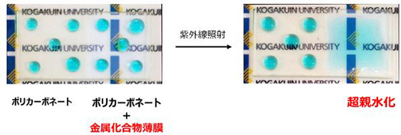 | 光誘起親水性膜 | 常温で光誘起親水性膜の形成を達成。優れた防汚性、耐候性を示す。 |