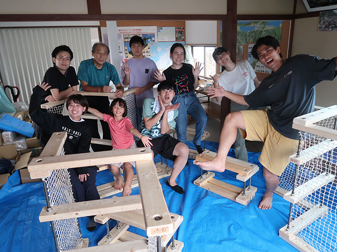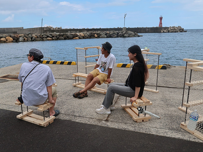 この2つの家具は、小伊津集落内の漁師小屋と佐香コミュニティセンターに設置し、引き続き現地の方に使っていただけることになりました。