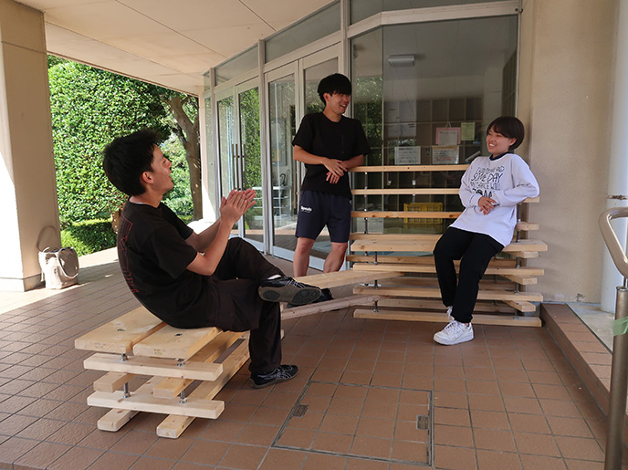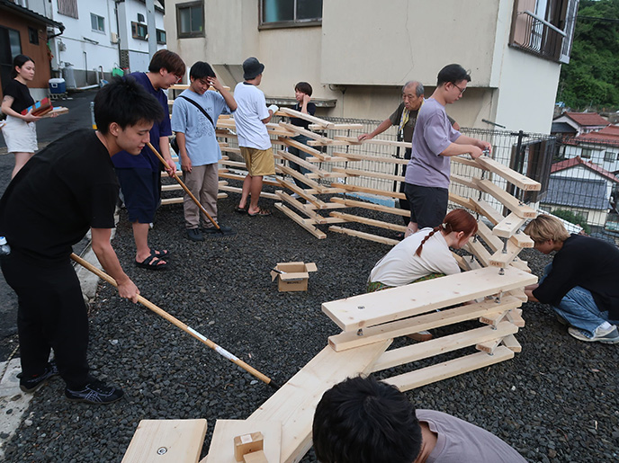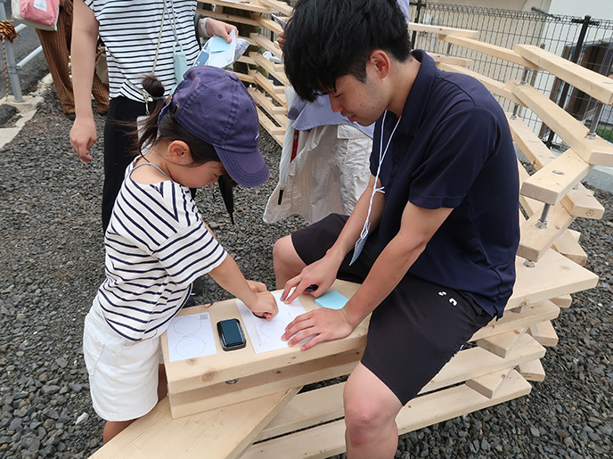 今回は冨永研の院生らが2つの家具を製作し、それを集落内に配置して、この家具を起点に町を歩いて集落の魅力を発見してもらう「スタンプラリー」を開催しました。