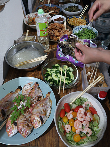 初日の夜の懇親会_小伊津のお母さん方の素晴らしい手料理