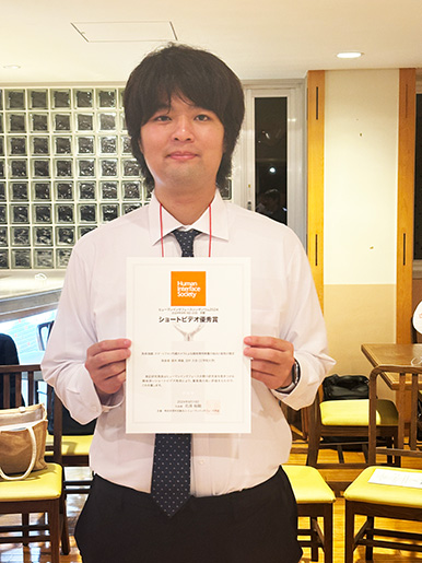 9月18日から20日に開催された「ヒューマンインターフェースシンポジウム2024」において、情報学専攻 修士課程1年の鈴木舜基さんがショートビデオ優秀賞を、情報学部情報デザイン学科 4年の原藤秀行さん(ともに生体情報処理研究室・田中久弥教授)が優秀プレゼンテーション賞を受賞しました。