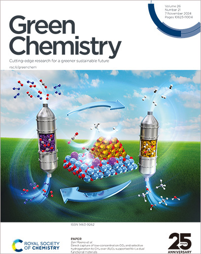 化学応用学専攻修士課程2年の立道智貴さん(大気環境触媒工学研究室、指導教員:並木則和教授、前野禅准教授)を筆頭著者として出版された低濃度CO2回収・資源化に関する論文が、英国王立化学協会が出版するGreen Chemistry誌に掲載され、Inside Front Coverに選定されました。