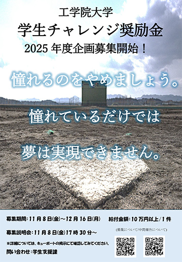 2025年度 工学院大学学生チャレンジ活動奨励金 募集