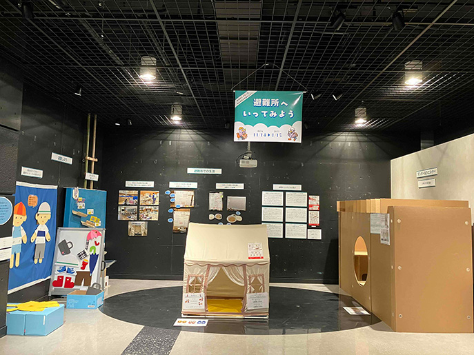 この企画展では、避難所に行く前の準備や行動を学ぶ体験展示に加え、実際の避難所での生活を写真等で解説しています。