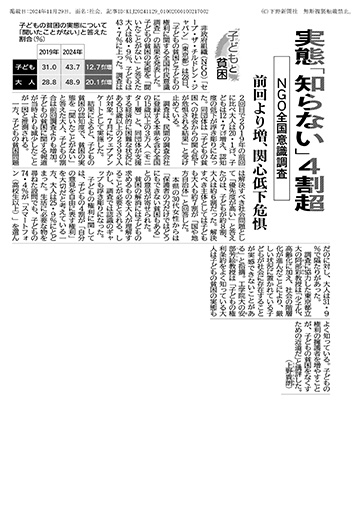 非政府組織(NGO)「セーブ・ザ・チルドレン・ジャパン」が発表した「子どもの貧困と子どもの権利に関する全国市民意識調査」の結果について、安部芳絵教授(教育推進機構教職課程科)のコメントが、下野新聞(11月29日朝刊)に掲載されました。