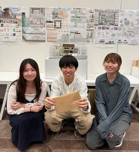 10月19日、滋賀県立美術館で開催された「木の家設計グランプリ2024 20選」で、建築デザイン学科4年の許裕伊さん・金井美樹さん・嶋田美咲さん(いずれも冨永研究室・冨永祥子教授)が20選に入賞しました。今年のテーマは「リノベーション」で、古き良きものを受け継ぎ、それに新たな知恵と工夫を加えて未来に繋ぐ、生き生きとした建築を創り出すという提案が求められました。