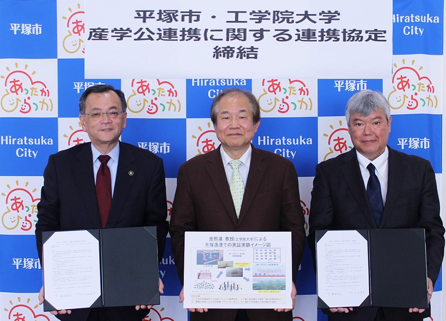 金熙濬 特任教授(環境化学科)は、2024年12月の海への肥料設置を目指し、同年秋から平塚市の協力を得て漁業協同組合などと準備を開始しました。実施に向け2024年11月22日に連携協定を締結、これにより平塚市長と学長の面会が今回初めて実現しました。