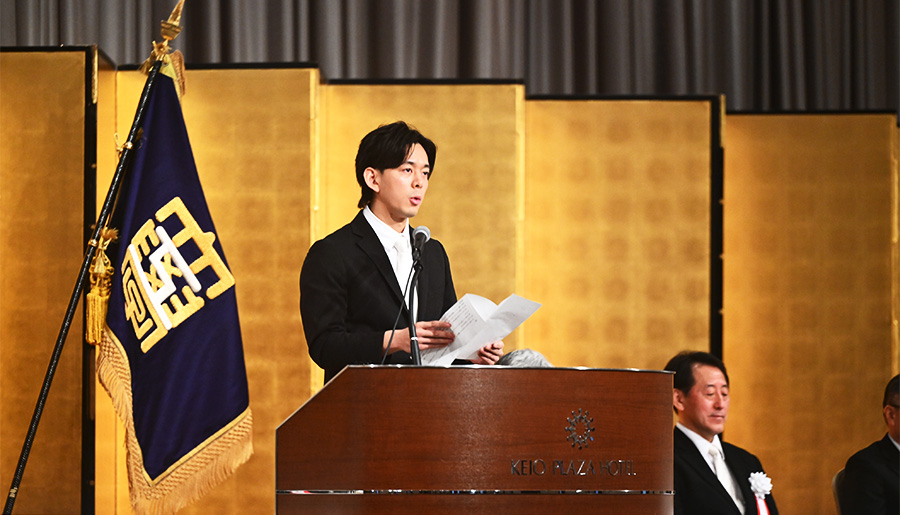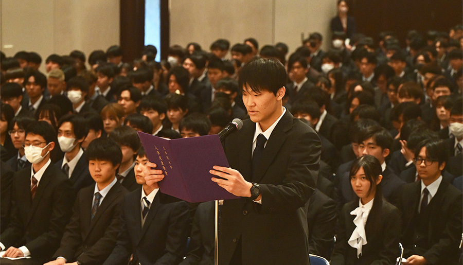 また、入学生宣誓では、情報学部 情報科学科の越田俊介さんが新入生を代表し、これからの学生生活への抱負を述べました。
