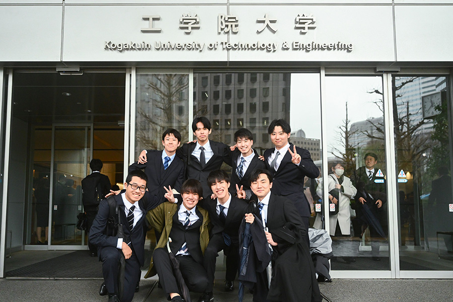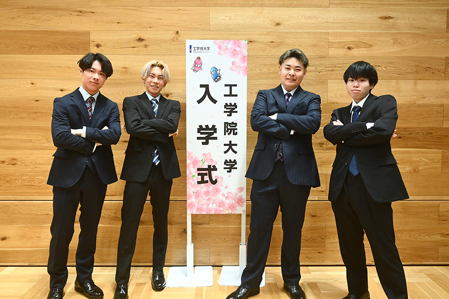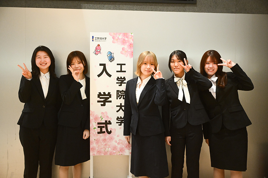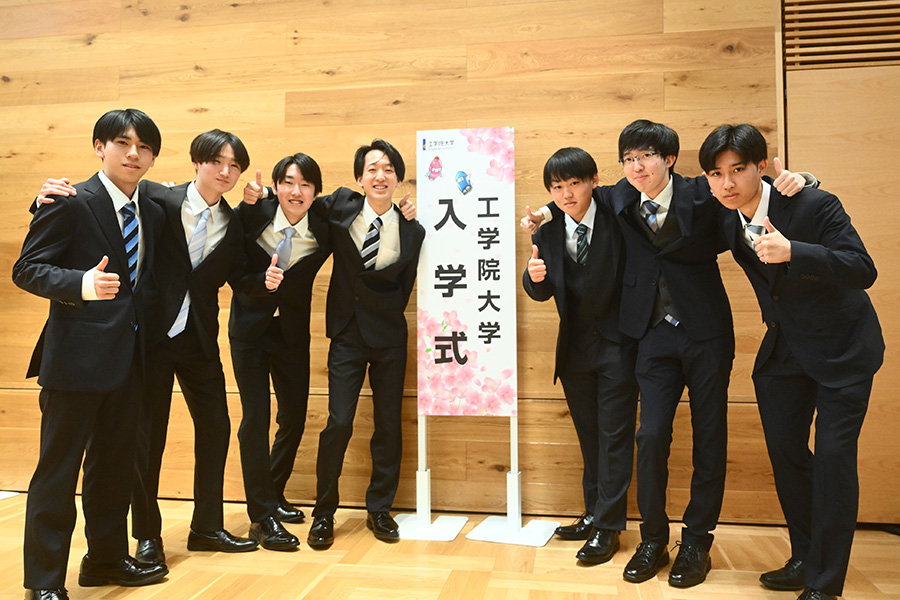 式典終了後には、隣接する工学院大学新宿アトリウムに設置されたフォトスポットにおいて、多くの新入生が記念撮影をしていました。