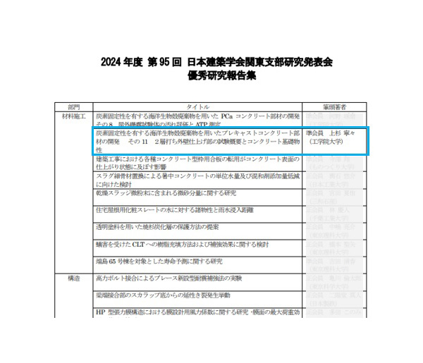 2025年3月5日から6日に横浜国立大学で開催された「2024年度 第95回 日本建築学会関東支部研究発表会」において、建築学部建築学科4年(受賞当時)の上杉寧々さん、建築学部まちづくり学科4年(受賞当時)の河野琢磨さん(ともに田村研究室・田村雅紀教授)が優秀研究報告賞を受賞しました。