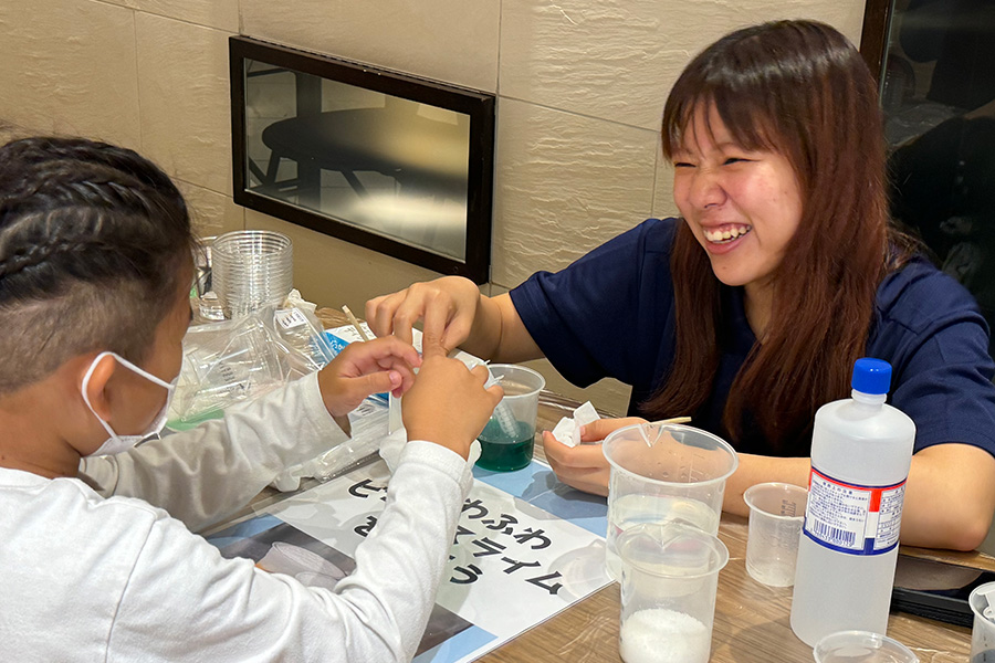 今回のイベントでは、ビールまつりにちなんだオリジナリティあふれるスライム作り体験をSCPと共同で企画。ほのかにはちみつの香りがするスライムを制作することができます。