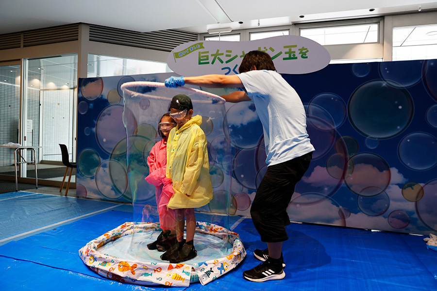 また、同会場ではSCPによる企画「巨大シャボン玉に入ってみよう」も開催。来場者は、巨大なシャボン玉の中に入り、その内側の世界を眺める体験を楽しめます。