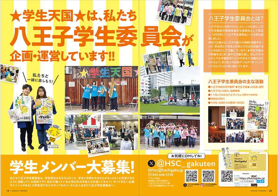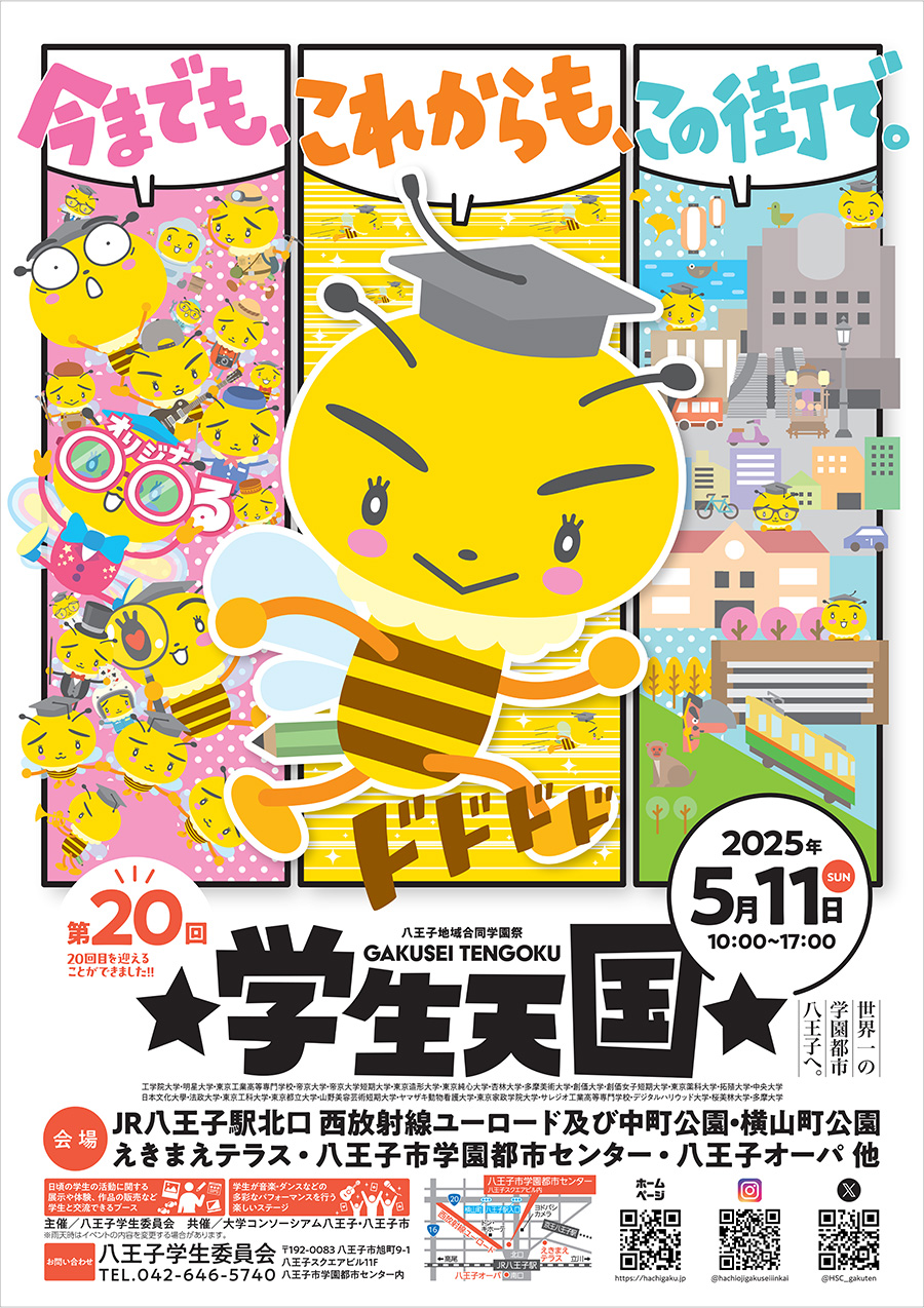 学生天国は、八王子地域にある大学・短大・高専25校の学生が一堂に集い、学生同士や地域の方々との交流を目的に開催される地域合同学園祭です。