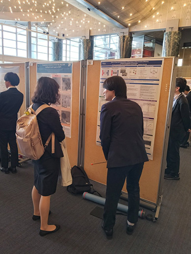 今回エントリーした英語ポスター発表は、講演大会の国際化の一環として設置されたもので、英語で発表・質疑応答が行われました。