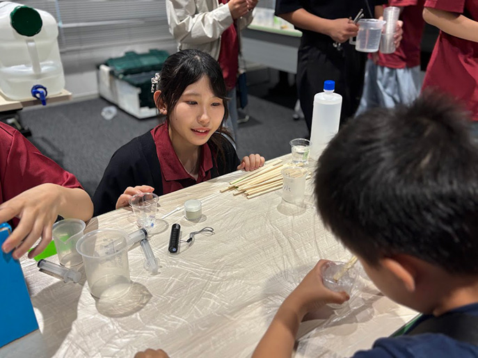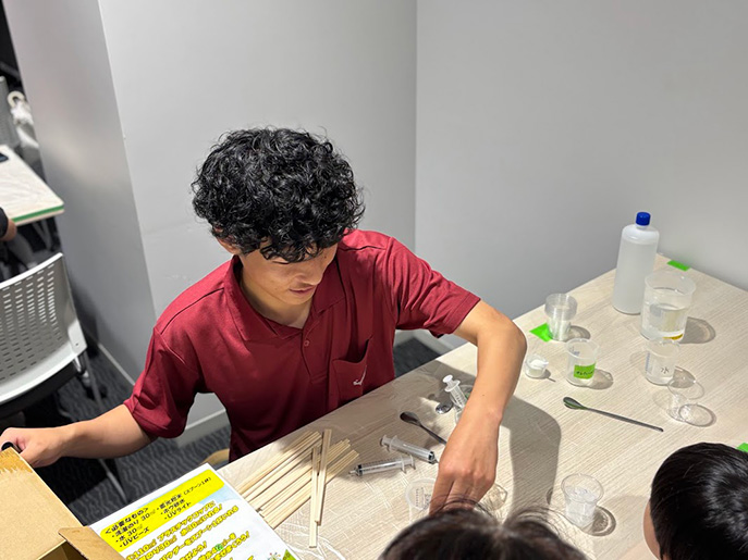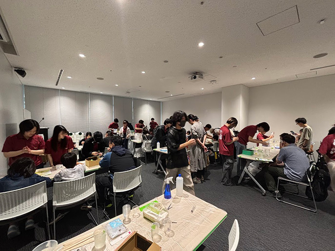 SCPはスライムを作る体験教室を行い、多くの子どもたちが参加しました。参加者は太陽光の紫外線で光る不思議なスライム作りを楽しみました。